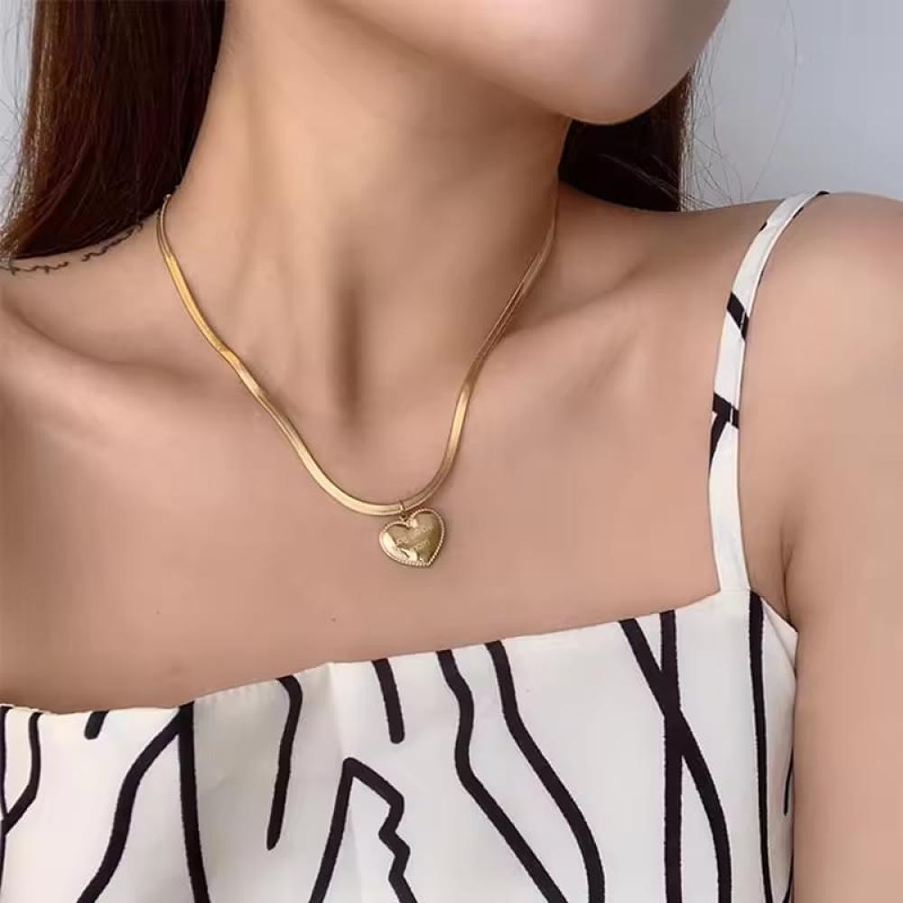 سلسال قلادة شكل قلب كلاسيكي محفور عليها love ذهبي