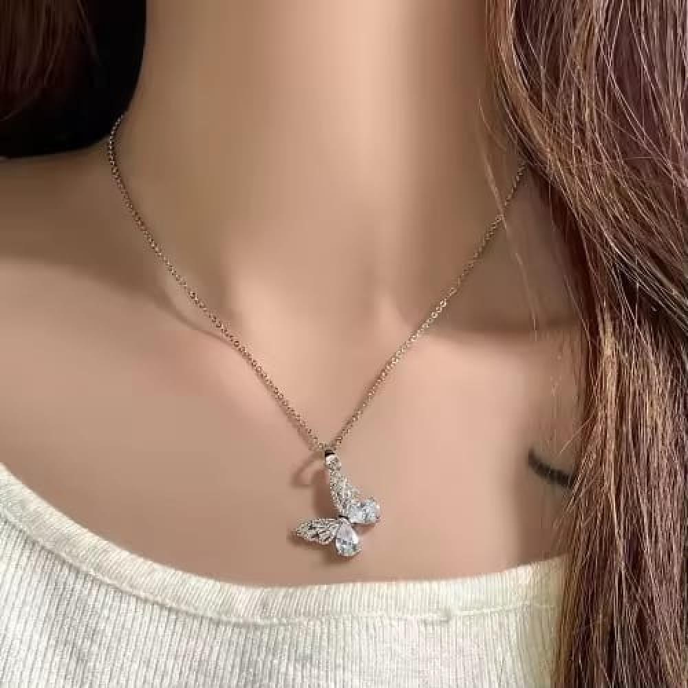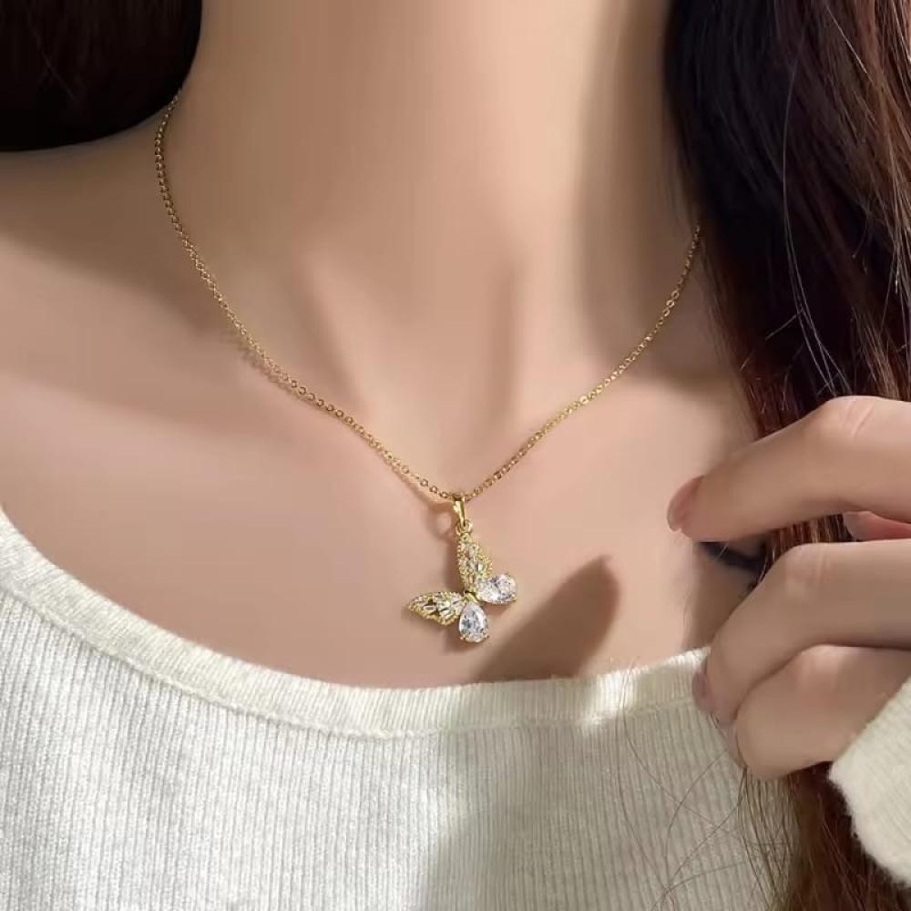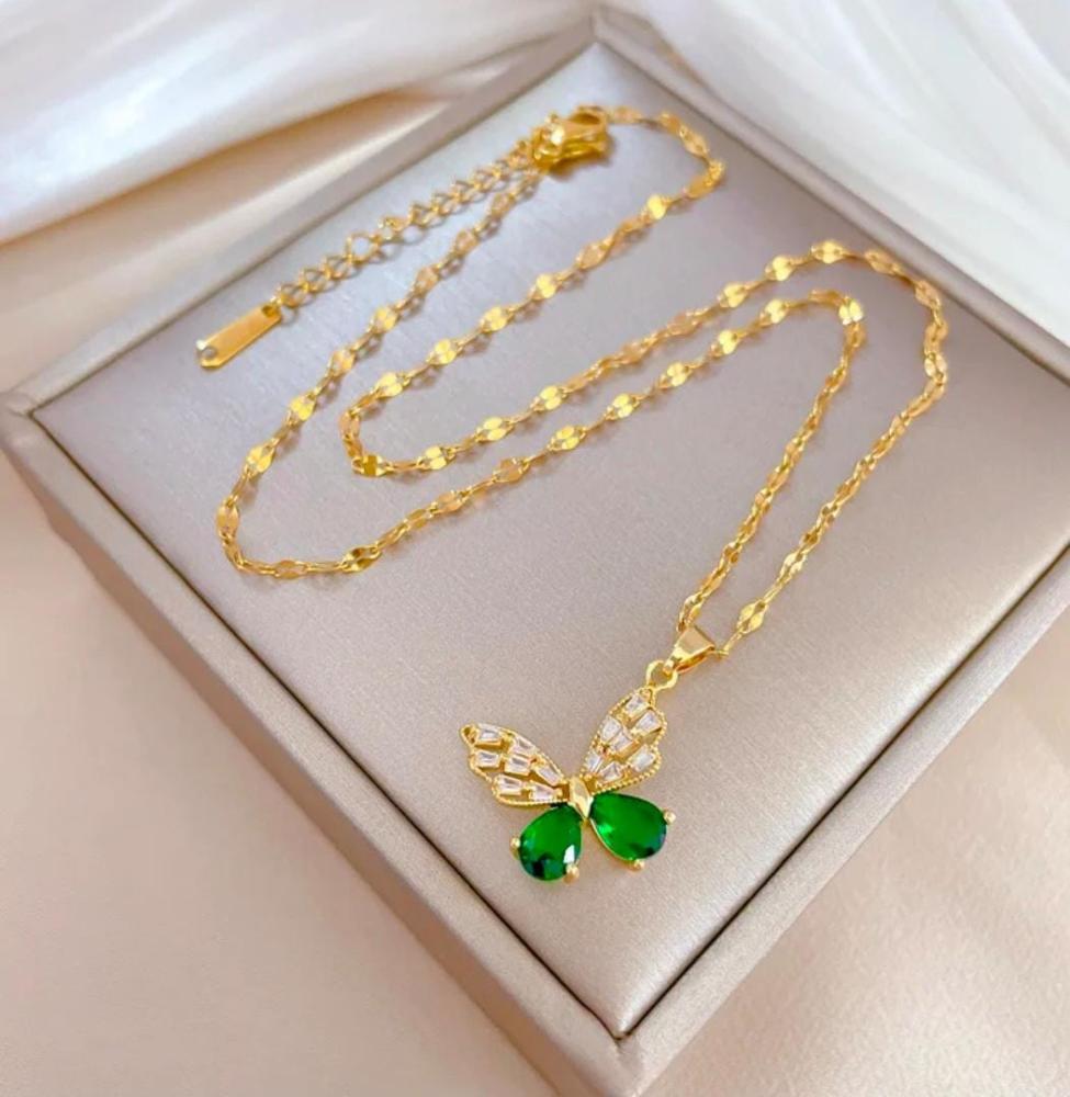 أضف لمسة من الرقي والأناقة إلى إطلالتك مع سلسلة فراشة الزمرد، تصميم ناعم مستوحى من جمال الفراشات ورشاقتها، مع لمسة فاخرة باللون الأخضر الغامق الزمردي الذي يضفي شعورًا بالترف الملكي.